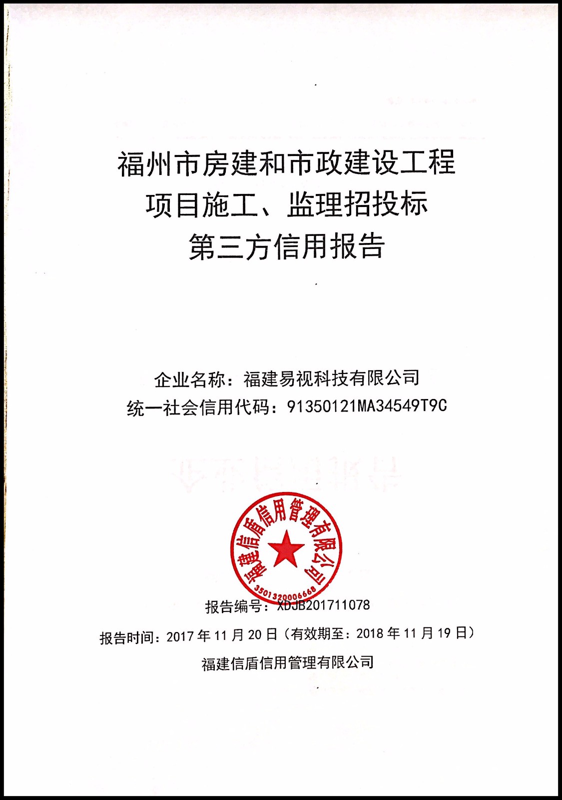 福建易視科技有限公司 XDJB201711078
